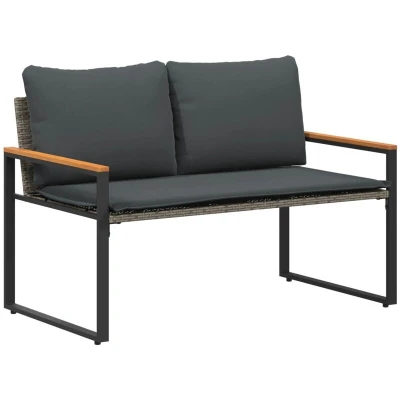 Bench with Cushion Grey and Dark 115 x 65 72 cm Rattan vidaXL