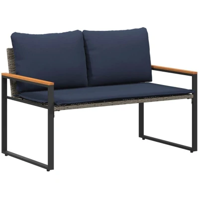 Bench with Cushion Grey and Navy Blue 115 x 65 72 cm Rattan vidaXL