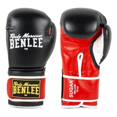 Benlee Rocky Marciano Sugar Deluxe Leather Boxing Gloves Black/Red, 16 oz