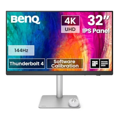 BenQ PD3226G 32 4K UHD (3840x2160) 144Hz Monitor for Designers, IPS, 95% P3, 100% sRGB, 90W Thunderbolt 4, Software Calibration, KVM, Daisy Chain, Reflection Free Nano Matte Panel, Height Adjustable