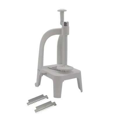 Kitchen KnivesForget the old way of chopping and dicing things manually and it taking forever, now you can whip up your favourite dishes in a flash and ensure perfect and precise cuts each and every time. Whether you're making fresh salads or a fragrant stir fry, this Benriner Cook's help with three interchangeable blades will help you create mouthwatering meals consistently.This stainless steel Benriner Cook's help with three interchangeable blades is excellent for chopping vegetables and fruits. The different blades gives you the ability to slice in various ways: Standard flat blade cuts perfect slices and adjusts for thickness. Fine-toothed blade will help you create elegant vegetable garnishes for professional-looking meals. Medium-toothed blade is excellent for quick and easy uniform stir-fry pieces that will cook up in a flash. Coarse-toothed blade can make chunky and crisp cuts of vegetable or fruits. Great for potatoes, onions, radishes, cucumbers, carrots, apples and peaches.