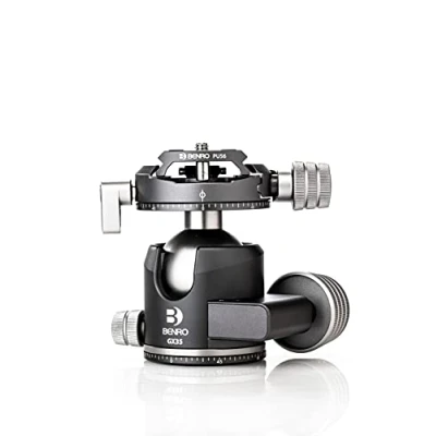 Benro GX35 Low Profile Ballhead with PU56 Plate, 35kg/77lb Capacity, Dual Panning, Aluminum, Arca Swiss, Ultralight, Secure Locking Mechanism