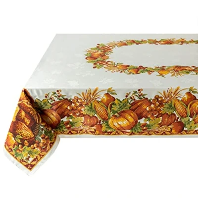 Features Thanksgiving designs that adds the perfect touch to your Autumn D cor Engineered Printed Tablecloth Easy Care Cotton Rich Fabric cotent: 52 percent cotton 48 percent polyester International products have separate terms, are sold from abroad and may differ from local products, including fit, age ratings, and language of product, labeling or instructions.
