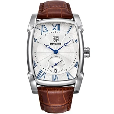 PRECISE TIME KEEPING: Quartz Movement, provide precise and accurate time keeping. QUALITY LEATHER BAND AND CLASSIC RECTANGLE Design : Scratch Proof Mineral Glass, Genuine Leather Band, Special Blue Pointer and Classic Rectangle Case Design, Bring You Luxury and Fashion Feeling. WATERPROOF FOR DAILY USE: Waterproof (30 M) - 3ATM. Perfect for all kind of business, casual, indoor and outdoor activities and daily use. High Quality Watches and Exquisite Packaging. It a great Birthday, Christmas, New Year gift for yourself , your family or your friends. Package: Watch * 1; Original Watch Box * 1; Instruction Manual * 1; Warranty card * 1
