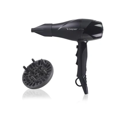PROFESSIONAL AC 2200W MOTOR: Powerful hair dryer with 2200W AC motor, ideal for quick drying and salon results directly at home. 6 CUSTOMIZABLE SETTINGS: Hair dryer with 2 speeds and 3 temperatures to adapt the air flow to your hair type and achieve the desired styling in total comfort. COLD AIR SHOT BUTTON: Fix the fold with a professional finishing touch thanks to the cold air body, ideal for maintaining the shape for longer. ACCESSORIES FOR COMPLETE STYLING: The Beper hair dryer includes a concentrator for precise styling and a diffuser to volumize hair from the roots, perfect for natural waves or curls. EASY TO USE AND CLEAN: The Beper hair dryer is equipped with a removable air filter for quick cleaning and a hanging hook, for practical management even in small spaces.