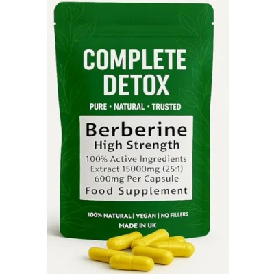 Berberine Supplement 15,000mg High Strength HCl for Blood Sugar Support, Metabolism & Weight Management Vegan Capsules UK Made Complete Detox