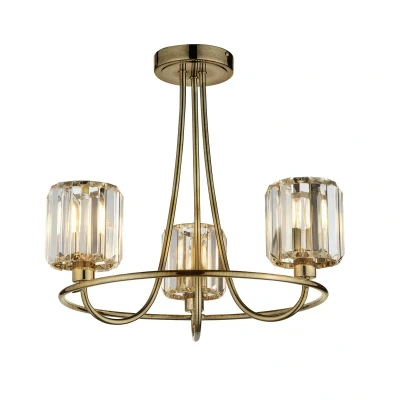 Berenice 3 Light Multi Arm Glass Shade Semi Flush Ceiling Lamp Antique Brass