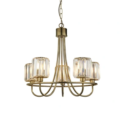Berenice 5 Light Multi Arm Glass Shade Ceiling Pendant Antique Brass