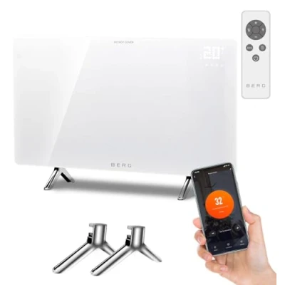 ✔ LOW RUNNING COSTS – FROM JUST 14p PER HOUR This far-infrared electric heater offers exceptional energy efficiency. Operating at 100% efficiency, it delivers powerful heat at a low cost. Infrared heating is up to 1/3 the cost of comparable convection heaters and up to 50% cheaper than gas central heating, helping reduce household energy bills. ✔ HEATS UP TO 12m² – PERFECT FOR BEDROOMS, OFFICES & LIVING ROOMS Designed to heat areas up to 12 square metres, this smart infrared panel heater provides fast, comfortable radiant warmth. Ideal for single rooms or link multiple BERG heaters together via the app for full-home zoned heating. ✔ 3-IN-1 SMART CONTROL – WIFI APP, REMOTE & TOUCH PANEL Control your heating your way. Use the Wi-Fi app for full 7-day programmable scheduling, the included remote control for quick adjustments, or the integrated touch control panel for manual operation. Works perfectly with modern smart-home routines. ✔ WALL MOUNTED OR FREE-STANDING – FLEXIBLE INSTALLATION Choose your setup: mount the heater securely to a wall using the included bracket, or use the included feet to position the heater anywhere. Perfect for renters, home offices, bedrooms, garden rooms, studios and more. ✔ ULTRA-SLIM 12MM FRAMELESS GLASS DESIGN With a premium 12mm ultra-slim glass panel, this heater delivers exceptional style and performance. Its sleek, frameless design blends seamlessly into any modern home—providing warmth without bulky radiators or heaters taking up space., Weight: 27.778245012 pounds, Manufacturer: BERG