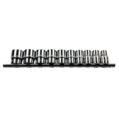 1/2" Drive 10pc Shallow Metric 6 Sided Single Hex Sockets 10mm 24mm on Rail