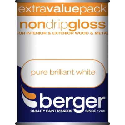 Berger 1.25l Non Drip Gloss Pure Brilliant White 1.25L, 273235