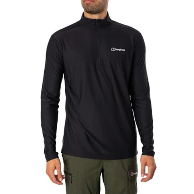 Berghaus Men's 24/7 Half Zip Long Sleeve Tech Baselayer T Shirt, Black, S