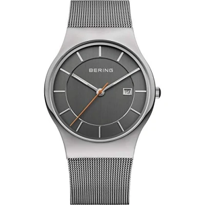 The BERING watch has a highly scratch-resistant and flat sapphire crystal covering the grey dial Classic watch collection | classic, puristic, and yet exciting - inspired by Danish design | quartz movement The case is made from silver IP-plated medical grade (316L) stainless steel. The case is 38 mm in diameter and 5 mm in thickness The strap is made from grey IP-plated milanese consisting of medical grade (316L) stainless steel. The straps length is 200 mm and the width is 22 mm Water resistant up to three ATM / 30 meters / 98 feet | General resistance to rain, splashing, accidental submersion and showering. Not suitable for swimming or bathing