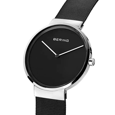 The classic collection watches are classic, puristic, and yet exciting - inspired by danish design, and with a quartz movement The minimalistic BERING watch has a highly scratch-resistant and flat sapphire crystal with a black dial The glamorous case is made of high-quality, silver IP-plated stainless steel (316 L); It is 6 mm wide and the diameter is 39 mm The strap is made of high-quality, black IP-plated stainless steel (316 L);It is 185 mm long and 18 mm wide Water resistant up to 5 ATM/50 meters; General resistance to splashing, showering but not to swimming, snorkeling or diving