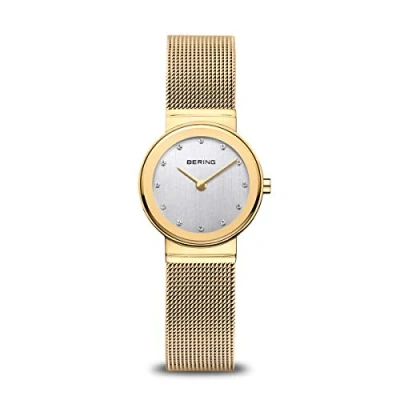 The Classic Collection - Classic, purist and yet exciting - inspired by Danish design | Quartz movement Sapphire crystal - The minimalist Bering watch has a highly scratch-resistant and flat sapphire crystal with a silver dial Case and bracelet - The case is made of gold IP-plated stainless steel. The case is 6mm flat and has a diameter of 26mm. The length of the bracelet is 185mm and the width is 14mm 5 ATM - The watch has a water resistance of up to 5 ATM - this means that it is protected against rain and splashes of water Gifts - Give the gift of great and unique watches and jewelry! At BERING you will find an individual gift for everyone - be inspired by our gift ideas and find the perfect BERING gift for him/her