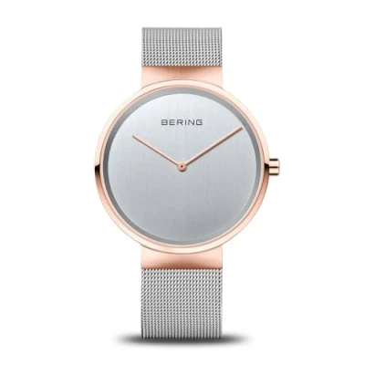 The Classic Collection - Classic, purist and yet exciting - inspired by Danish design | Quartz movement Sapphire crystal - The minimalist Bering watch has a highly scratch-resistant and flat sapphire crystal with a silver dial Case and bracelet - The case is made of rose gold IP-plated stainless steel. The case is 6mm flat and has a diameter of 39mm. The length of the bracelet is 185mm and the width is 18mm 5 ATM - The watch has a water resistance of up to 5 ATM - this means that it is protected against rain and splashes of water Gifts - Give the gift of great and unique watches and jewelry! At BERING you will find an individual gift for everyone - be inspired by our gift ideas and find the perfect BERING gift for him/her