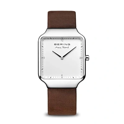The MAX RENÉ COLLECTION watches can change colors, change straps, change looks - the strap can be changed in seconds, and with a quartz movement The minimalistic BERING watch has a highly scratch-resistant and flat sapphire crystal with a white dial The glamorous case is made of high-quality, silver IP-plated Stainless Steel (316l). It is 6 mm wide and the diameter is 32 mm The strap is made of high-quality Calfskin Leather in Brown. It is 195 mm long and 20 mm wide Water resistant up to 3 ATM / 30 meters. Protected against rain and water splashes