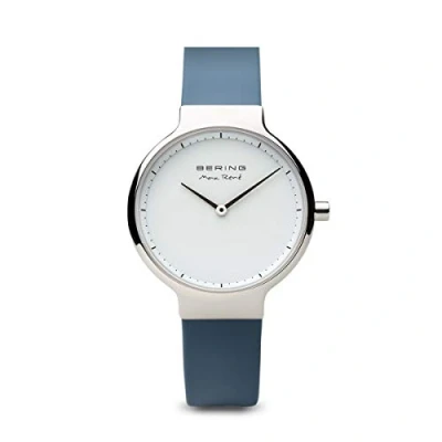 The BERING watch has a highly scratch-resistant and flat sapphire crystal covering the white dial Max René watch collection | change colors, change straps, change looks - the strap can be changed in seconds | quartz movement The case is made from silver IP-plated medical grade (316L) stainless steel. The case is 31 mm in diameter and 7 mm in thickness The strap is made from blue coloured silicone. The straps length is 175 mm and the width is 14 mm Water resistant up to five ATM / 50 meters / 164 feet | General resistance to splashing, showering but not to swimming, snorkeling or diving