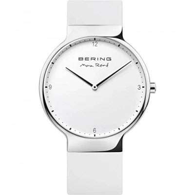 The BERING watch has a highly scratch-resistant and flat sapphire crystal covering the white dial Max René watch collection | change colors, change straps, change looks - the strap can be changed in seconds | quartz movement The case is made from silver IP-plated medical grade (316L) stainless steel. The case is 40 mm in diameter and 7 mm in thickness The strap is made from white coloured silicone. The straps length is 190 mm and the width is 20 mm Water resistant up to 5 ATM / 50 meters / 164 feet | General resistance to splashing, showering but not to swimming, snorkeling or diving The watch comes with BERING original packaging