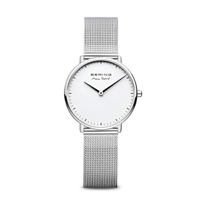 The BERING watch has a highly scratch-resistant and flat sapphire crystal covering the white dial Max René watch collection | change colors, change straps, change looks - the strap can be changed in seconds | quartz movement The case is made from silver IP-plated medical grade (316L) stainless steel. The case is 30 mm in diameter and 5 mm in thickness The strap is made from silver IP-plated milanese consisting of medical grade (316L) stainless steel. The straps length is 170 mm and the width is 14 mm Water resistant up to three ATM / 30 meters / 98 feet | General resistance to rain, splashing, accidental submersion and showering. Not suitable for swimming or bathing The watch comes with BERING original packaging