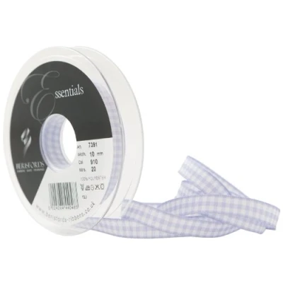 Gingham ribbon is a traditional check Made from 100 percent polyester Fully washable Available in orchid colour Measures 20 metre length by 10 mm width