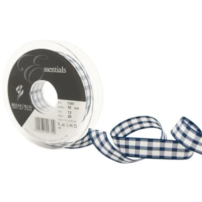 Berisfords 1141 20 m x 15 mm Bold Crisp Check Ribbon, Navy