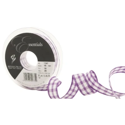 Berisfords 1141 20 m x 15 mm Bold Crisp Check Ribbon, Purple