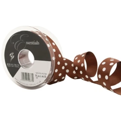 Berisfords 12251 20 m x 25 mm Classic Bold Polka Dot Ribbon, Brown