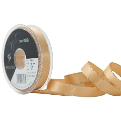 Berisfords 15 mm Gold Edge Satin Ribbon, Honey