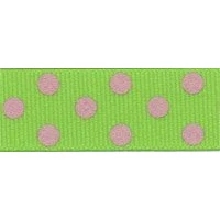 Berisfords 15 mm Polka Dot Spotty Grosgrain Ribbon, Green/Pink