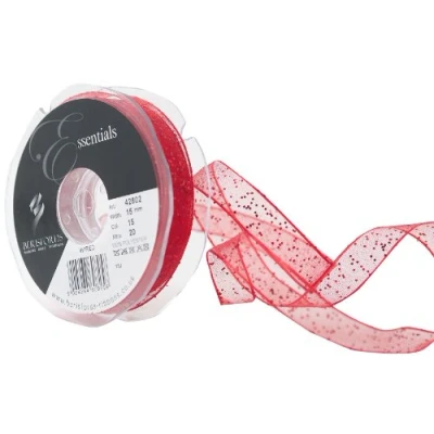 Ideal for gift wrapping and wedding craft Sprinkling of glitter creates a delicate and effervescent look Floral and decorative display Available in red colour Measures 20 m length by 15 mm width