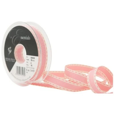 Berisfords 15 mm Vintage Stitch Ribbon, Pink