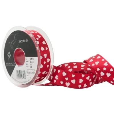 Ideal for tasteful gifts and surprises A flutter of white hearts on red ribbon is perfect for romance The luxurious satin eludes class and sophistication Available in red colour Measures 20 metre length by 25 mm width