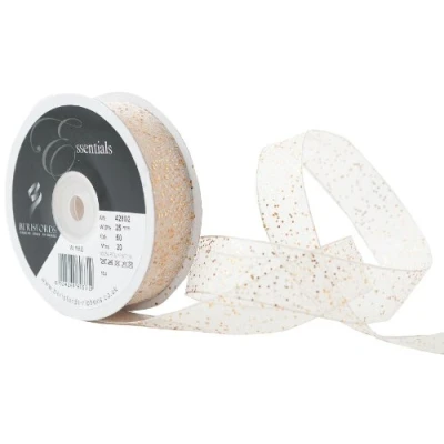 Ideal for gift wrapping and wedding craft Sprinkling of glitter creates a delicate and effervescent look Floral and decorative display Available in cream colour Measures 20 m length by 25 mm width