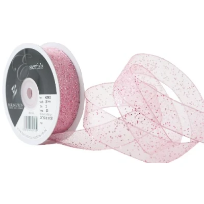 Ideal for gift wrapping and wedding craft Sprinkling of glitter creates a delicate and effervescent look Floral and decorative display Available in pink colour Measures 20 m length by 25 mm width