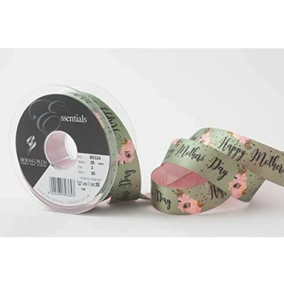 Berisfords 25mm Happy Mothers Day Floral Satin Ribbon 3 Colours