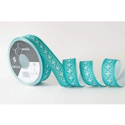 Scandi Flake Ribbon, Green/White, 25mm on a 25m reel Ideal for gift wrapping, occassions, card making, crafts, decorations, clothing, florists, flowers, weddings Supplied on recyclable plastic reel 100% Polyester Ribbon