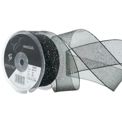 Ideal for gift wrapping and wedding craft Sprinkling of glitter creates a delicate and effervescent look Floral and decorative display Available in black colour Measures 20 m length by 40 mm width
