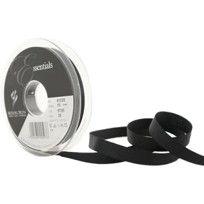 Berisfords 41025 20 m x 10 mm Polyester Grosgrain Ribbon, Black