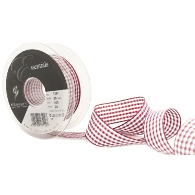 Berisfords 7391 20 m x 25 mm Traditional Check Gingham Ribbon, Burgundy