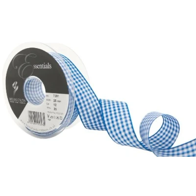 Berisfords 7391 20 m x 25 mm Traditional Check Gingham Ribbon, Royal