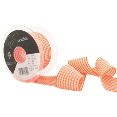 Berisfords 7391 20 m x 40 mm Traditional Check Gingham Ribbon, Orange Delight