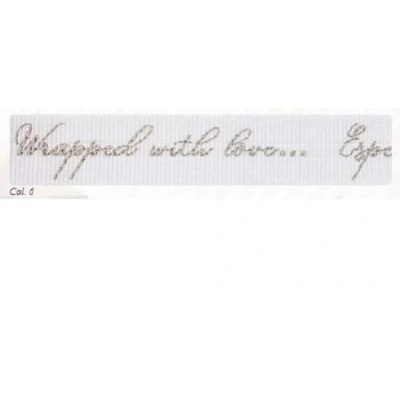 16mm width 20m Reel A beautiful UK manufactured ribbon Add a touch of sparkle to presents with this stylish foil printed design, choose from 8 colours for a truly personal message of ‘Wrapped with love Especially for you. ’ Perfect for crafting, gift wrapping, celebrations and apparel