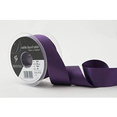 Berisfords Double FACE Poly Satin Ribbon, BlackBerry, 35 mm