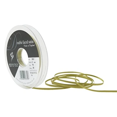 Berisfords Double FACE Poly Satin Ribbon, Moss, 3 mm