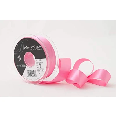Berisfords Double FACE Poly Satin Ribbon, Sugar Pink, 25 mm