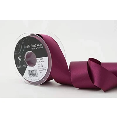 Berisfords Double FACE Poly Satin Ribbon, Wine, 35 mm