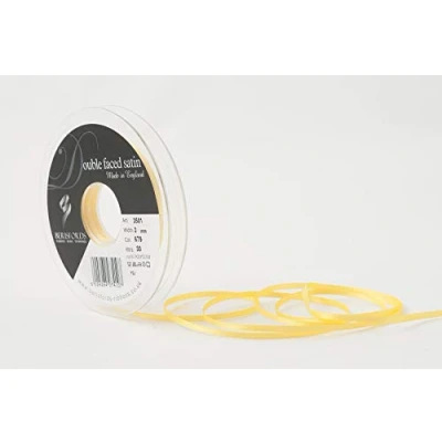 Berisfords Double FACE Poly Satin Ribbon, Yellow, 3 mm