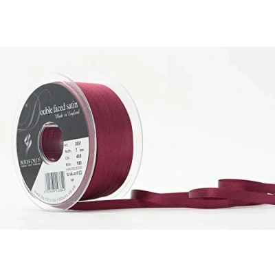 Berisfords Double Faced Satin Ribbon, Burgundy, 7 mm Width, 100 metre Length
