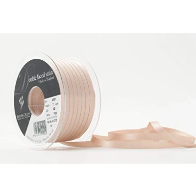 Berisfords Double Faced Satin Ribbon, Ecru, 7 mm Width, 100 metre Length
